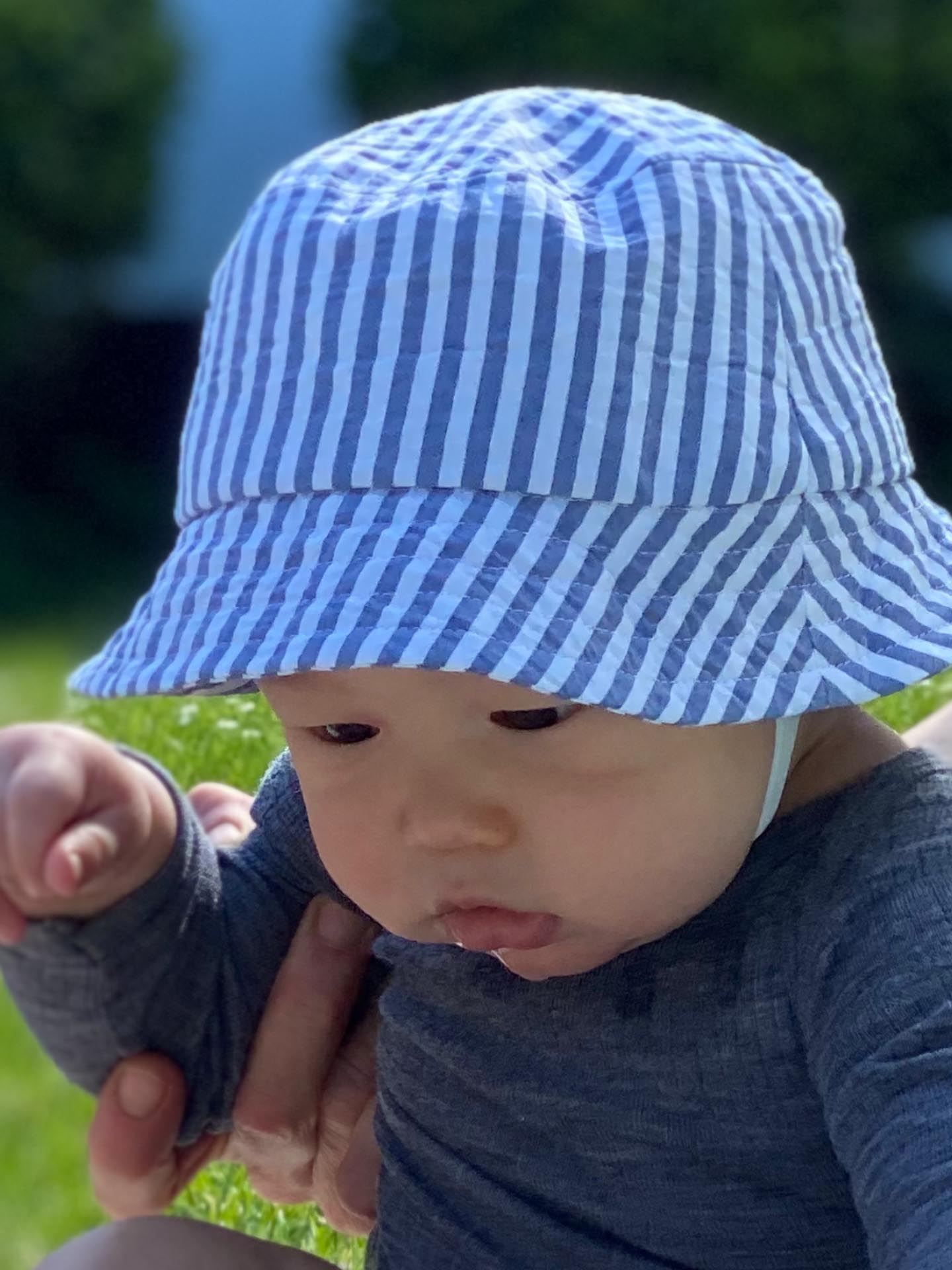 Sommerens store hit: bøllehatten eller sommerhatten til at skærme mod solens stråler og skarpt lys. Har du et stykke stof på 50 x 50 cm, så har du rigeligt til at sy en af disse 2 modeller, der ligger i mønsterpakken. Mønsteret indeholder 2×4 størrelser, der svarer til barnets hovedomkreds, fra de er helt små til omkring 5-6 års alderen. Der er forskellige valgmuligheder, hvad enten du foretrækker bindebånd, elastik, velcro-lukning eller helt uden til de store børn.